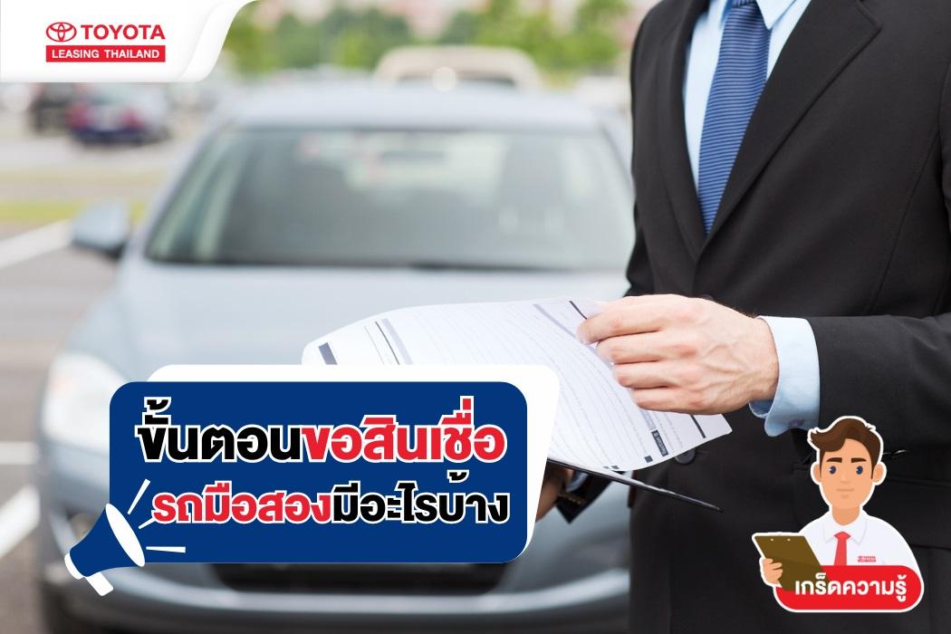 การซื้อรถมือสองเป็นทางเลือกที่หลายคนให้ความสนใจ เพราะปัจจุบันไม่จำเป็นต้องมีเงินก้อนก็ซื้อได้แล้ว และไม่ใช่เรื่องยากที่จะขอสินเชื่อ เพราะมีสถาบันการเงินหลายแห่ง ที่พร้อมให้บริการสินเชื่อรถมือสองที่สะดวก รวดเร็ว เพียงแค่เตรียมเอกสารให้ครบถ้วนและปฏิบัติตามขั้นตอนอย่างถูกต้อง ก็สามารถเป็นเจ้าของรถมือสองคันโปรดได้แล้ว สำหรับผู้ที่กำลังสนใจซื้อรถมือสองด้วยการขอสินเชื่อ โตโยต้า ลีสซิ่ง แนะนำขั้นตอนขอสินเชื่อรถมือสอง ดังนี้