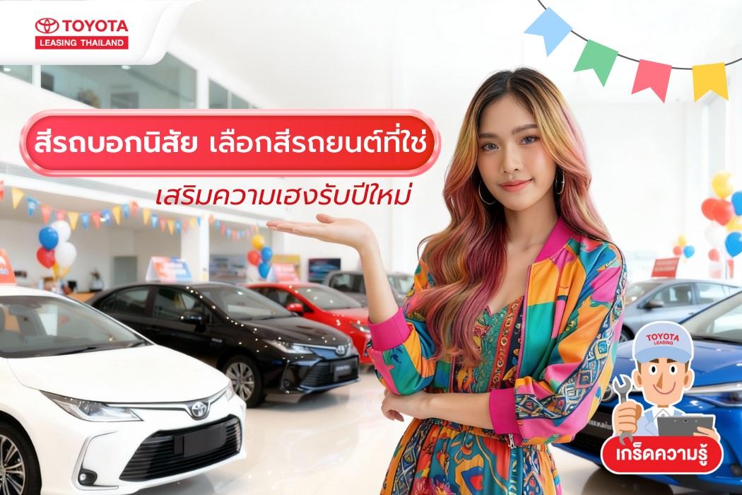 สีรถที่เราเลือกขับ สะท้อนถึงบุคลิกนิสัยของเจ้าของ และที่สำคัญกว่านั้นคือ หลายคนเชื่อว่าสีรถบอกนิสัยของเราได้ และยังเป็นส่วนสำคัญในการเสริมความเฮง และโชคลาภให้กับชีวิตอีกด้วย! เมื่อถึงช่วงเวลาที่เรากำลังจะเริ่มต้นสิ่งใหม่ ๆ โดยเฉพาะการออกรถใหม่รับปีใหม่ การพิจารณาเลือกสีรถยนต์ที่ใช่ จึงเป็นการลงทุน เพื่อความสุขและความสำเร็จตลอดทั้งปี โตโยต้า ลีสซิ่ง จะพาคุณไปสำรวจโลกของสีรถยนต์ พร้อมค้นหาว่าสีไหนที่เหมาะกับคุณที่สุด เพื่อให้เริ่มต้นปีใหม่ ด้วยความมั่นใจและเฮง ๆ ตลอดปี!