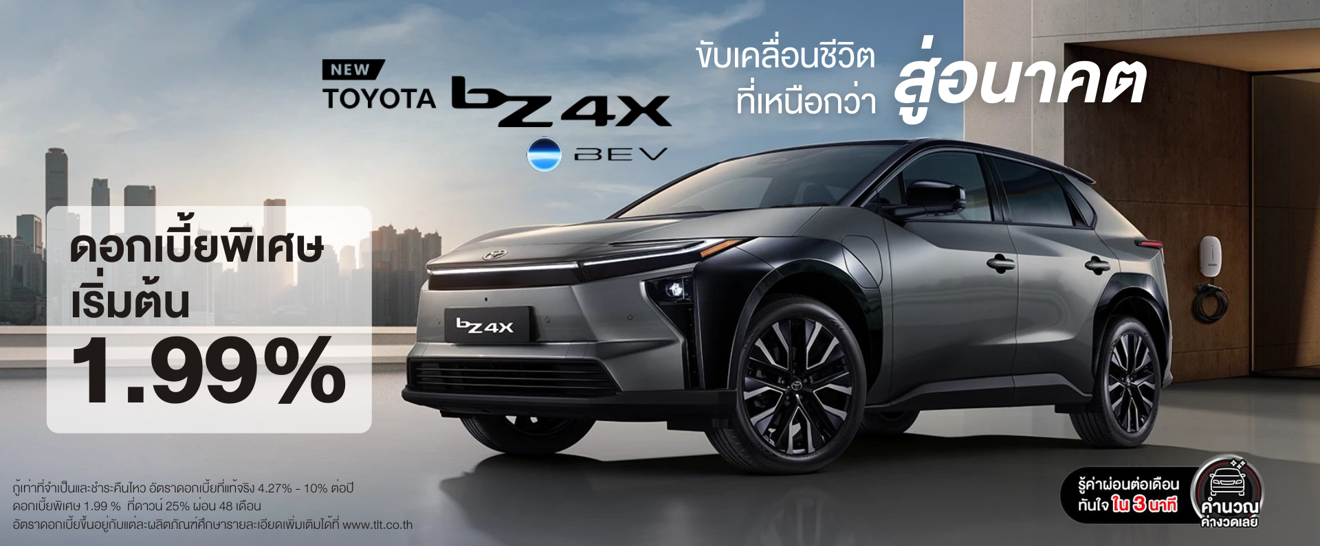 สัมผัสรถไฟฟ้าแห่งอนาคต NEW bZ4X ดอกเบี้ยพิเศษเพียง 1.99%*